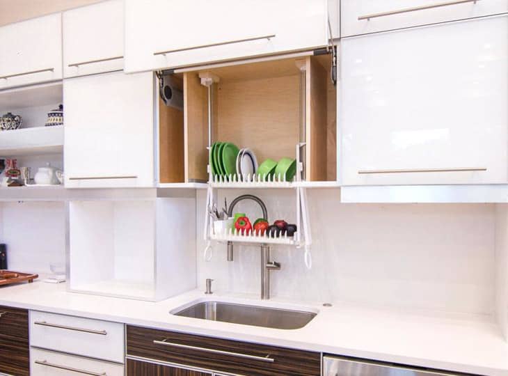 The baskets can keep small items and extra kitchen supplies out of sight while adding a decorative touch to the room. Based on a template provided by the sink manufacturer, a hole is cut into the counter material and the sink is inserted from above. Over the sink dish drying rack, gslife 2 tier stainless steel above sink dish rack sink shelf for kitchen, rustproof kitchen sink drying rack for storage, silver 4.5 out of 5 stars 1,015 $59.99 $ 59. Take your decorating efforts to new heights! In this charming kitchen, pottery, accessories and rarely used serving ware are kept safe above a lovely cabinet with glass doors. As long as you make it spacious enough, it will be much easier for you to come up with an elaborate setup in the long run. Xtreme mats under sink kitchen cabinet mat pick your size 25 x 22 waterproof cabinet protector liner cm 27 beige 4 9 out of 5 stars 2 351 47 95 47. The cabinet height above a range is typically the same height. 15 ideas for decorating above kitchen cabinets. There is no set measurement; The space above your cabinets can be built up to serve a specific purpose, like providing extra storage. You should consistently go with a hue that's darker on the acrylic dent than you'd absolutely like. Open shelves or cabinets above the sink will always be the best to store your coffee pots, equipment, and ingredients.