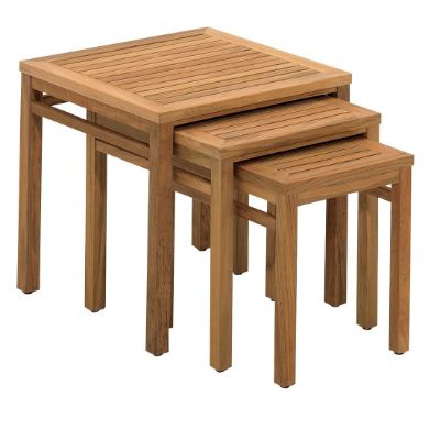 Teak tables living room nested tables. The tables can be used as side tables, coffee tables, lamp/plant this exotic set of 3 nesting tables is made of reclaimed wood, which means that every piece of furniture is unique and slightly different from the next. The teak nesting table medium is made out of the best wood for outdoor use as well as indoor a grade teak. These units take up little space, are portable and available in designs to complement any decor. Teak wood nesting side table / end table.
